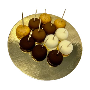 - Choco Crispies ( 1X vanille, 2X chocolade, crispies, fondant chocoladesaus)